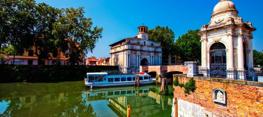 Tra le tappe più suggestive, spiccano le Porte Contarine, antico impianto idraulico che nel Novecento alimentava i primi impianti elettrici cittadini. Poco più avanti, si incontra la magnifica Porta Portello, con le sue colonne, i leoni in pietra e la scenografica scalinata cinquecentesca. Quest’ultima è stata restaurata ed è stata immortalata nelle opere del Canaletto e persino citata da Goldoni, che la definì “vaghissimo naviglio di specchi e intagli”.