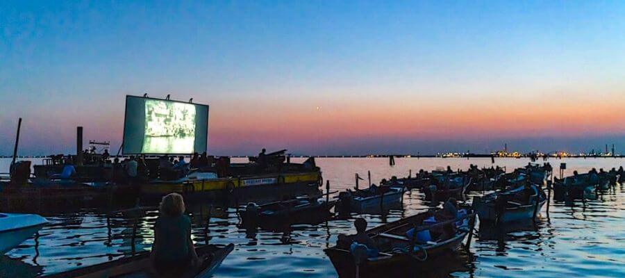 Immagina di poter aprire la finestra dal tuo appartamento in affitto breve a Venezia e poter vedere uno dei film in proiezione. Il cinema itinerante naviga anche sulle Isole e a Mestre, con film per tutti i gusti, che fanno sorridere, divertire, intrattengono e fanno riflettere.